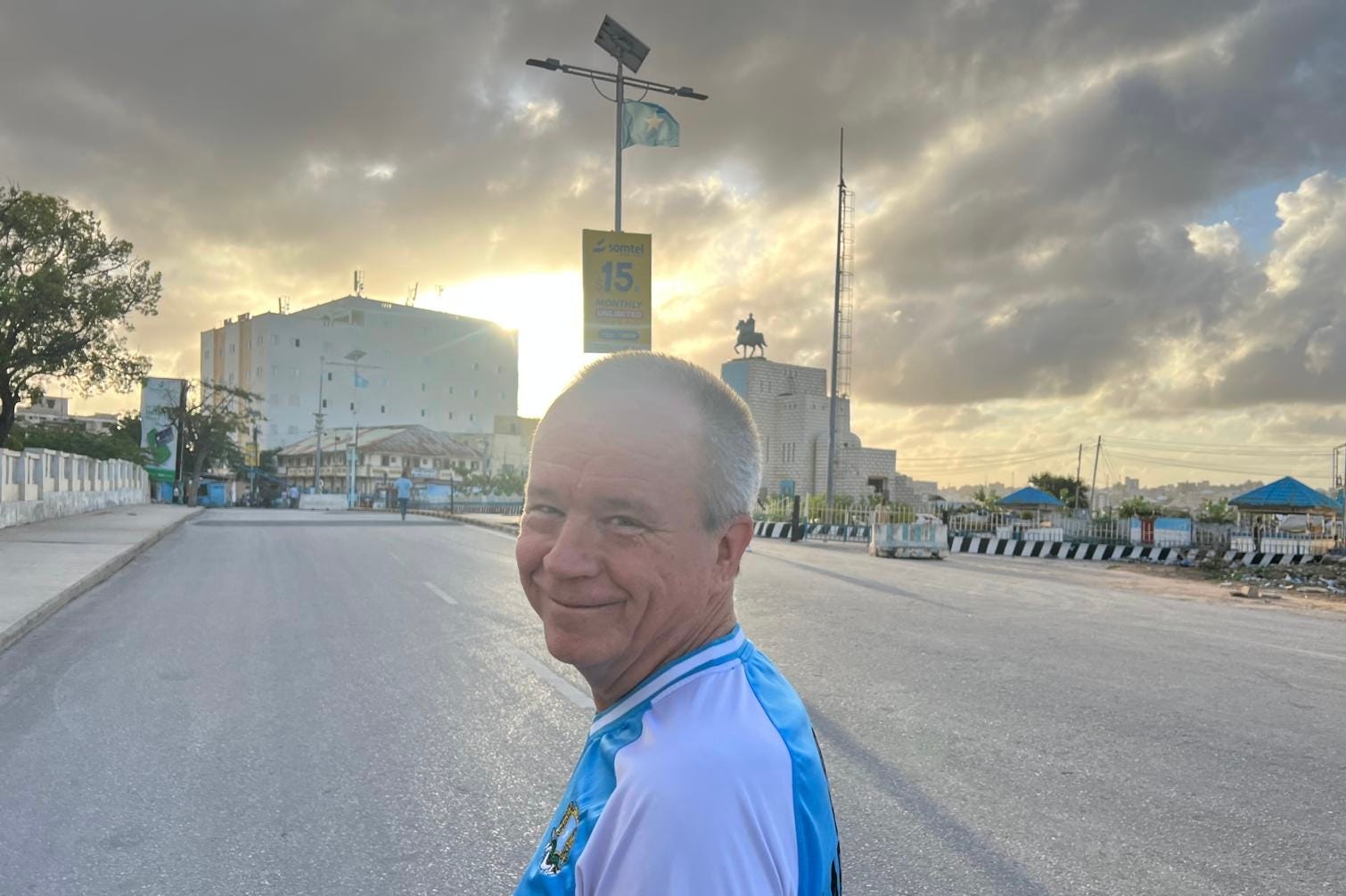 The author in downtown Mogadishu at the monument to Somalia’s national hero Sayid Mohamed Abdulle Hassan who resisted the British, Italian, and Ethiopian empires.